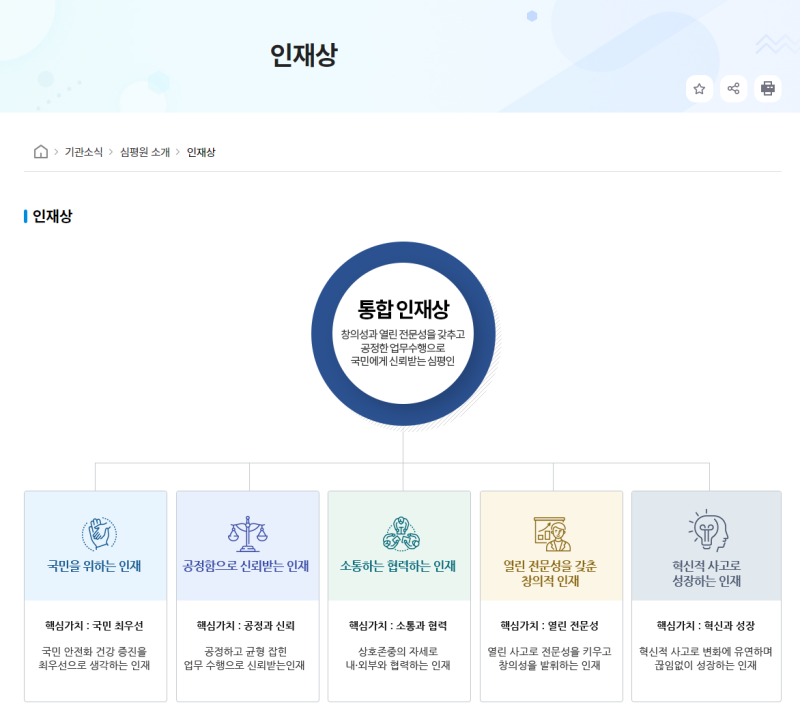 - 공정: 공정하고 투명한 업무 처리를 통해 국민의 신뢰를 얻고, 사회적 책임을 다합니다.