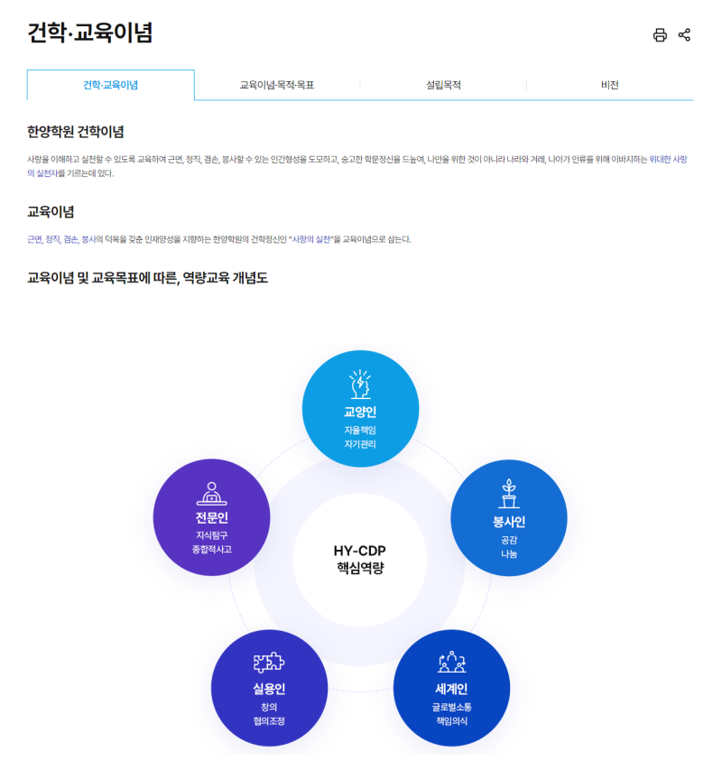 핵심 가치: 창의, 혁신, 봉사, 융합