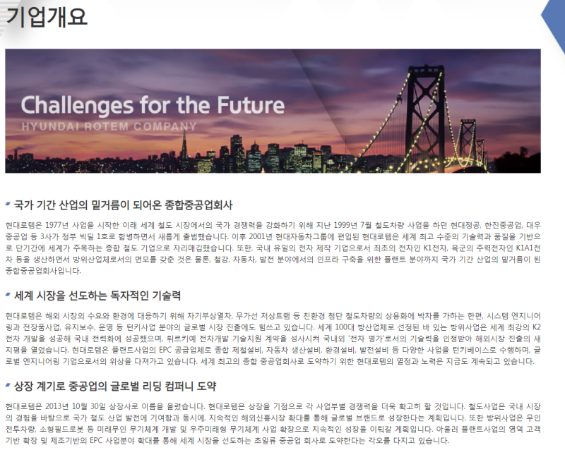 주요 사업: 철도, 방산, 플랜트