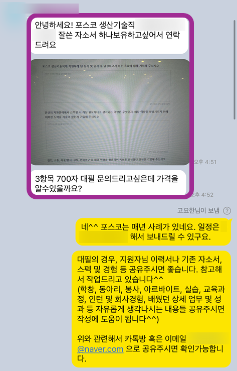 자소서 문항, 합격 자기소개서 첨삭 대필