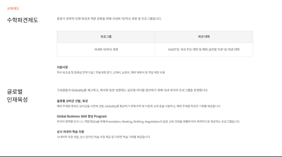 - 마케팅/영업: 시장 분석 능력, 고객 니즈 파악 능력, 논리적이고 설득력 있는 커뮤니케이션 능력, 글로벌 비즈니스 감각